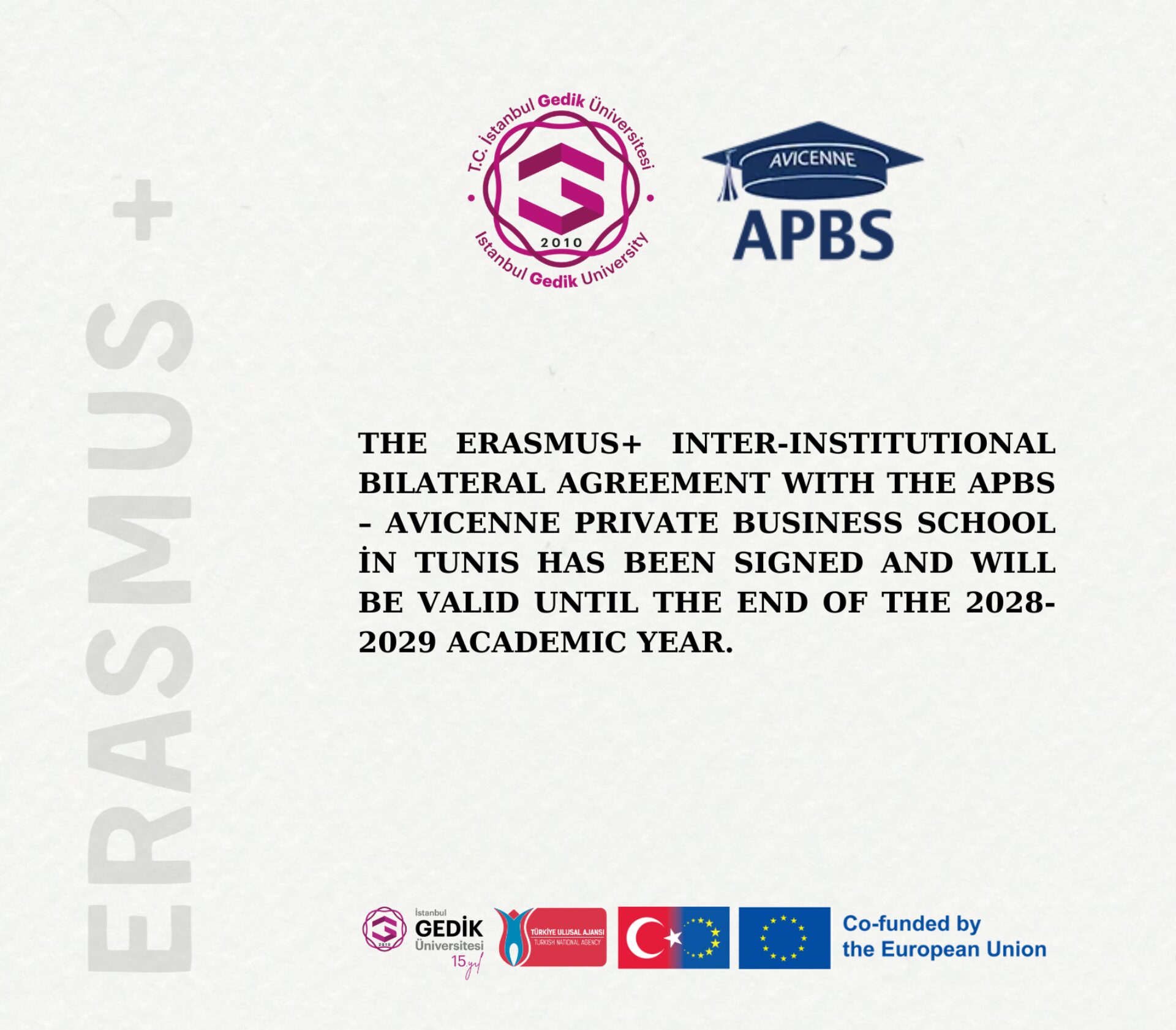 APBS – Avicenne Private Business School (Tunis) is pleased to announce the signature of an Erasmus+ Inter-Institutional Agreement (IIA) with T.C. İstanbul Gedik University. This partnership strengthens our international academic network and supports structured mobility and cooperation in priority disciplines.